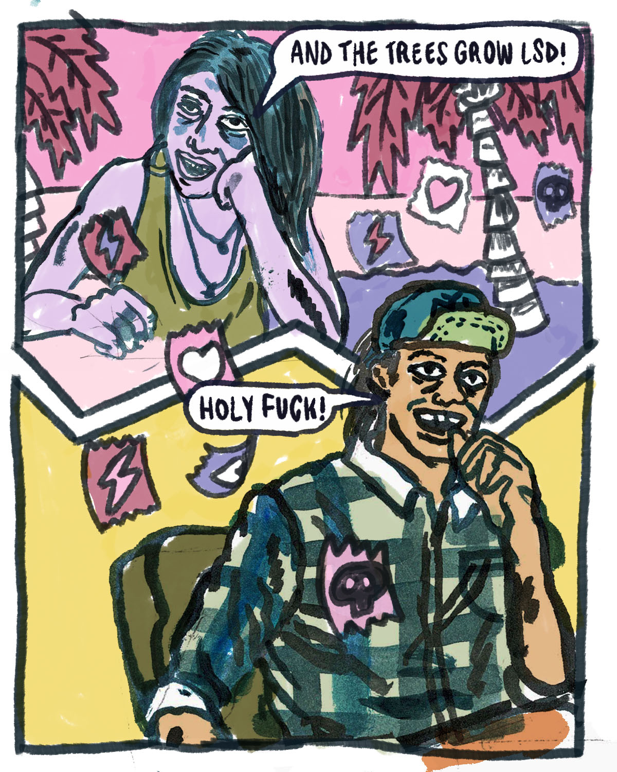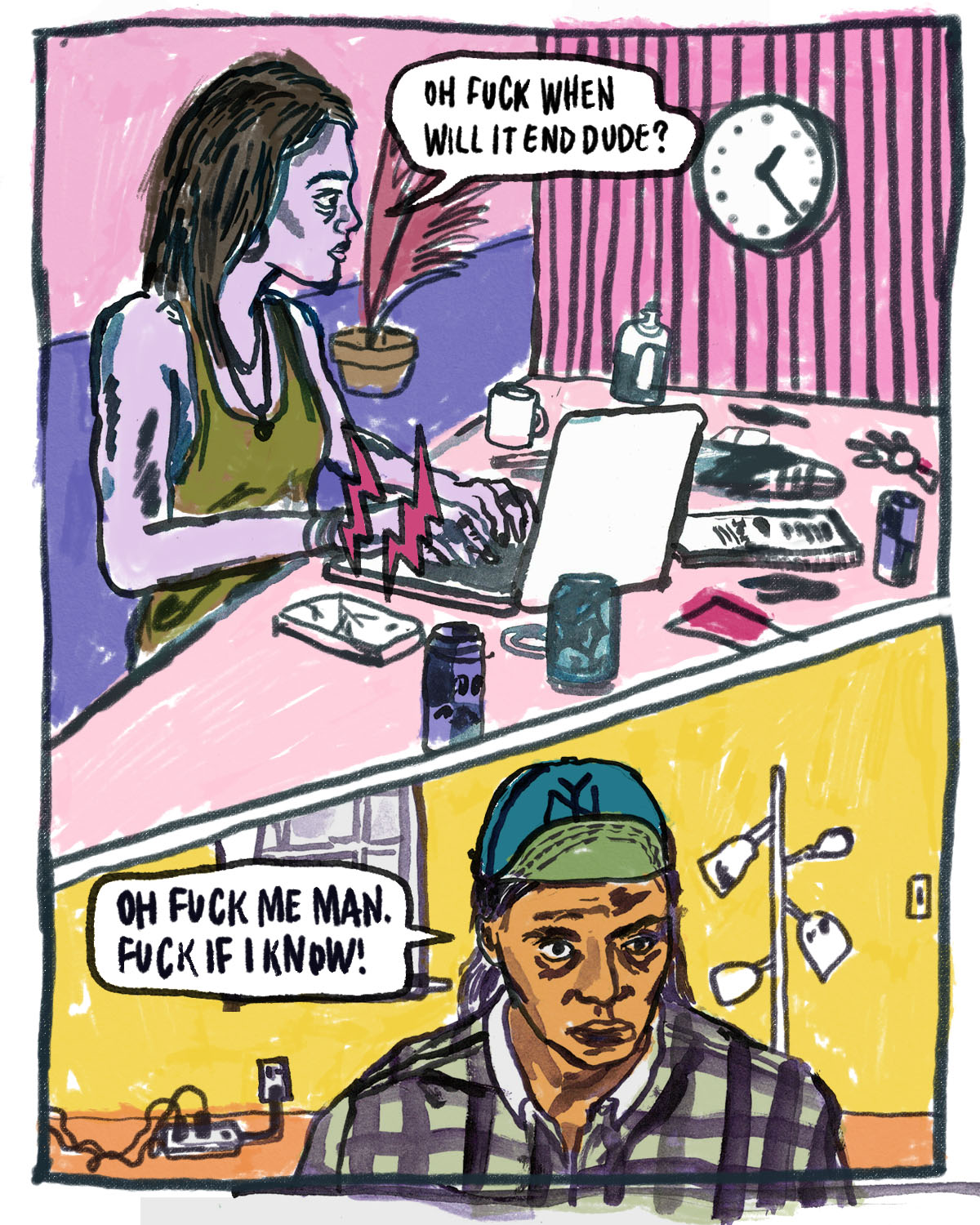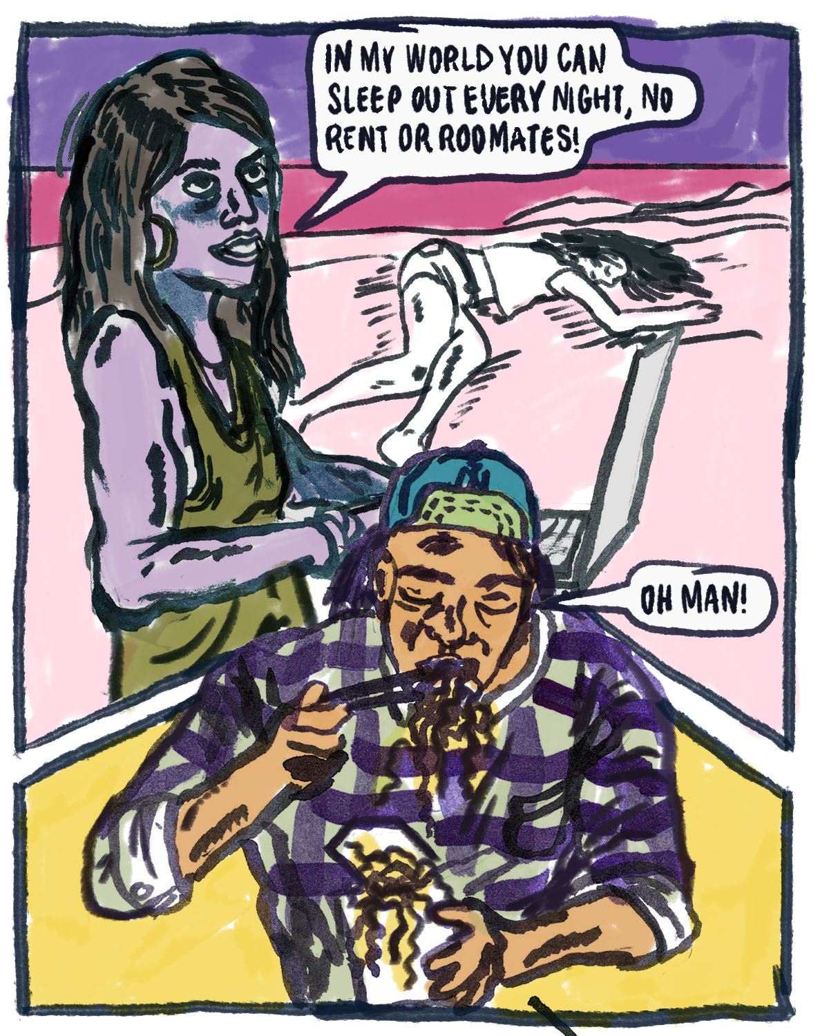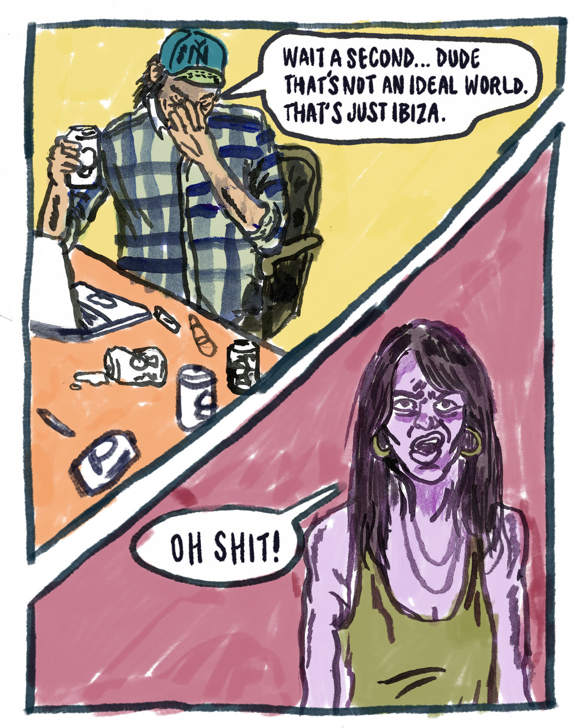 Brush Ink and Marker ✦ 2020 ✦ 8″ x 8″ printed comic. Part of Desert Islands published book “Rescuew Party by Pantheon.